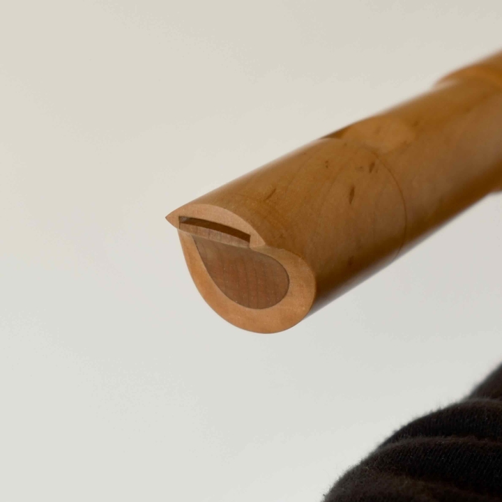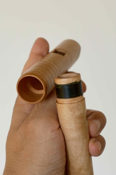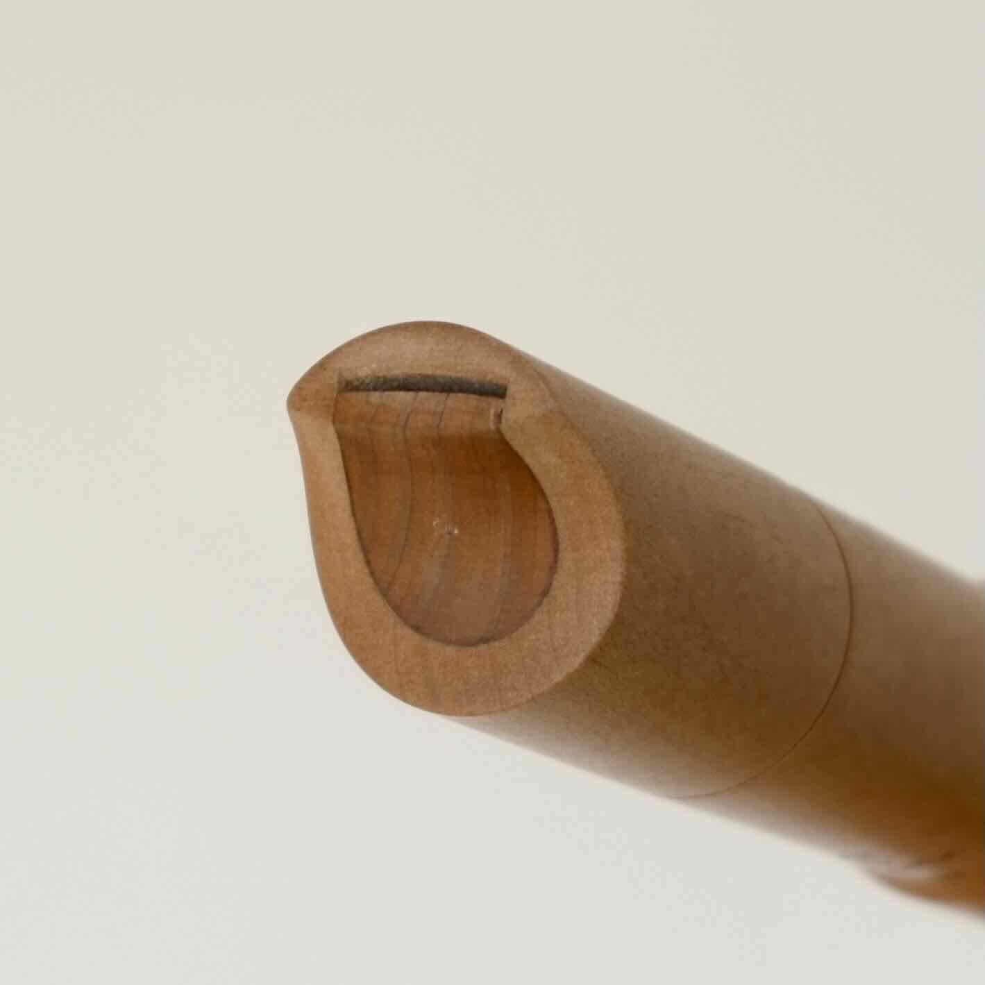 それでいて、吹き込み管の内容積分だけは呼気を溜め込む空間になるので、良い塩梅の「遊び」も生まれ、これが音の安定性につながっています。